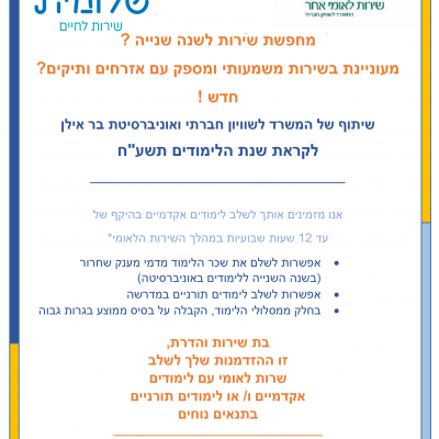 לפרטים על שירות שנה שניה בוהדרת בשילוב לימודים באוניברסיטה ניתן לפנות לשני 0502255023