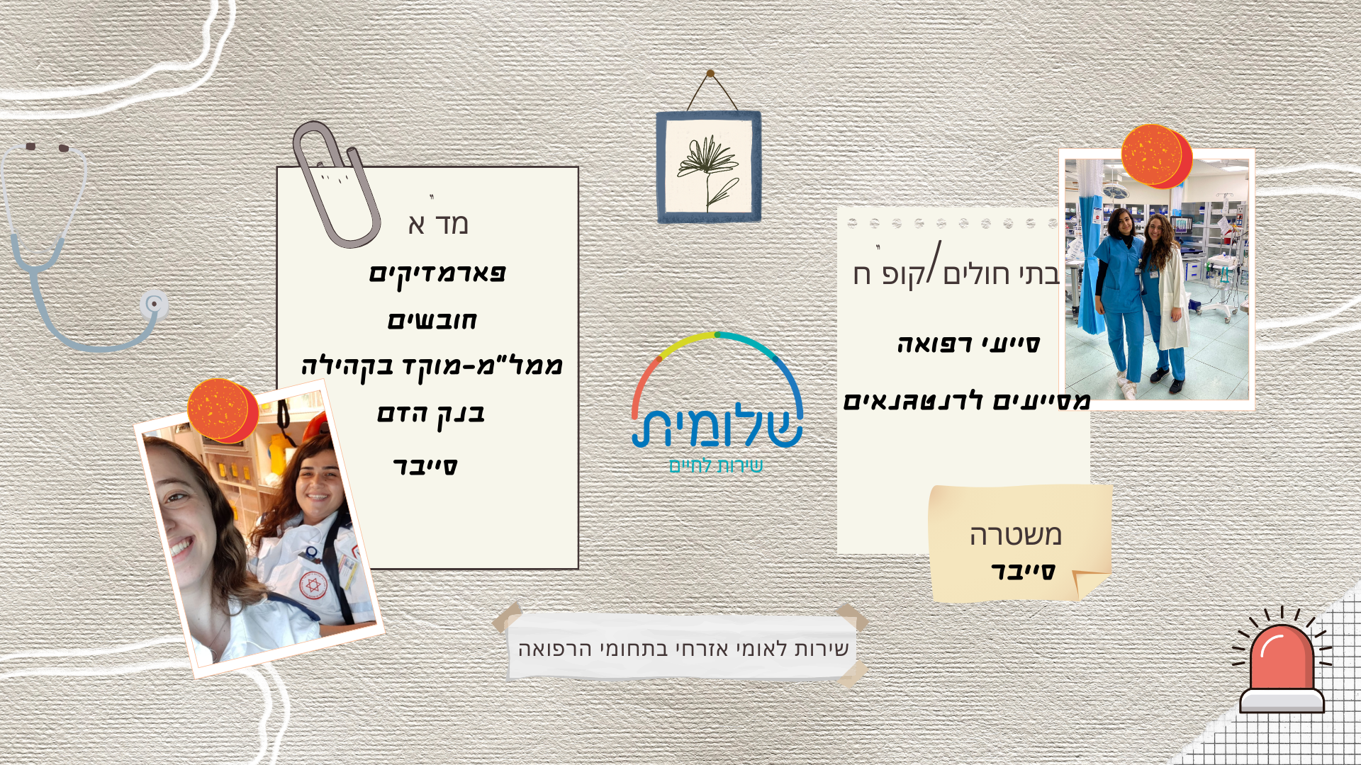 יש לכם הזדמנות לעשות שירות לאומי אזרחי משמעותי ומרתק בעולמות הרפואה וההצלה.