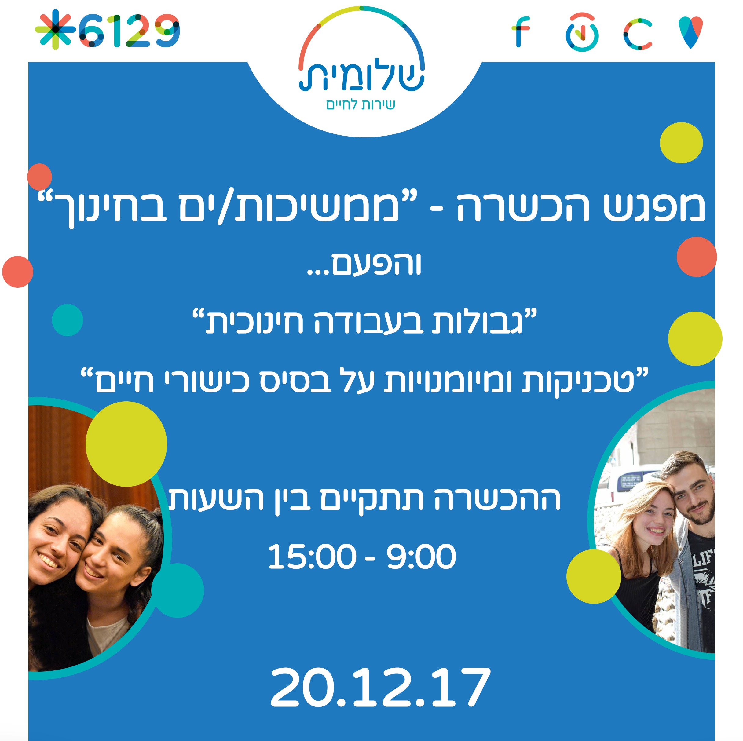 ב20.12.17 תתקיים הכשרה למתנדבי חינוך בבאר שבע, עכו ורמת גן..הזמנה תגיע אליכם מהרכזת