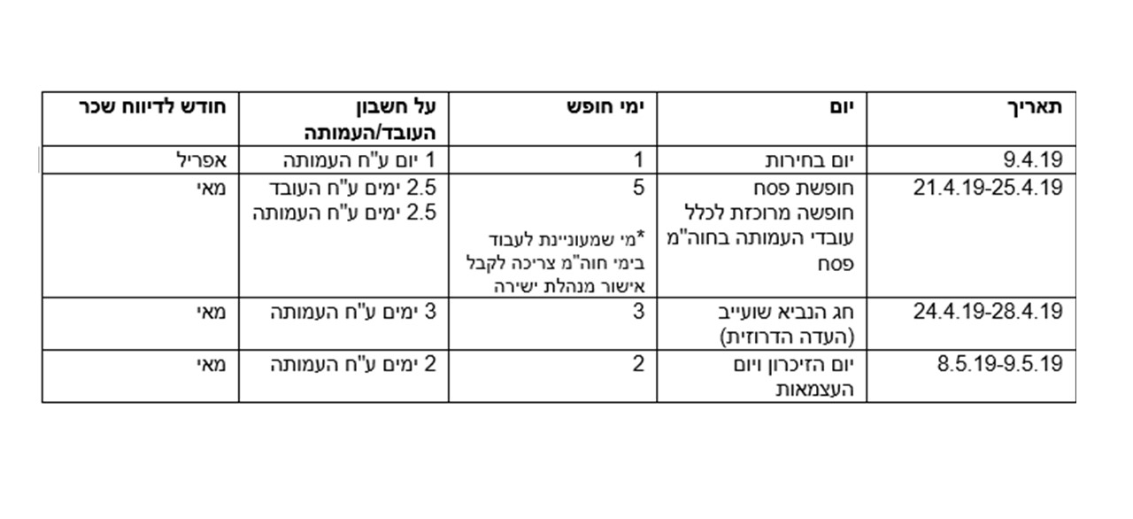 ימים בהם לא עובדים בחודשים אפריל-מאי: