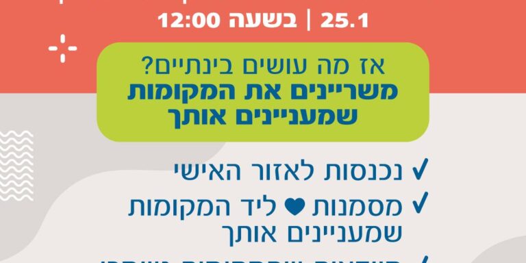 | מד"א -זום ארצי לכל הארץ | 24/03/2026 | 8:30-13:00 | יעל הנדלסמן | 050-8885403 | כולל דיור | רכז/ת תחום- אגף מקצועי, רכז/ת תחום- סושיאל דוברות | מד"א |
