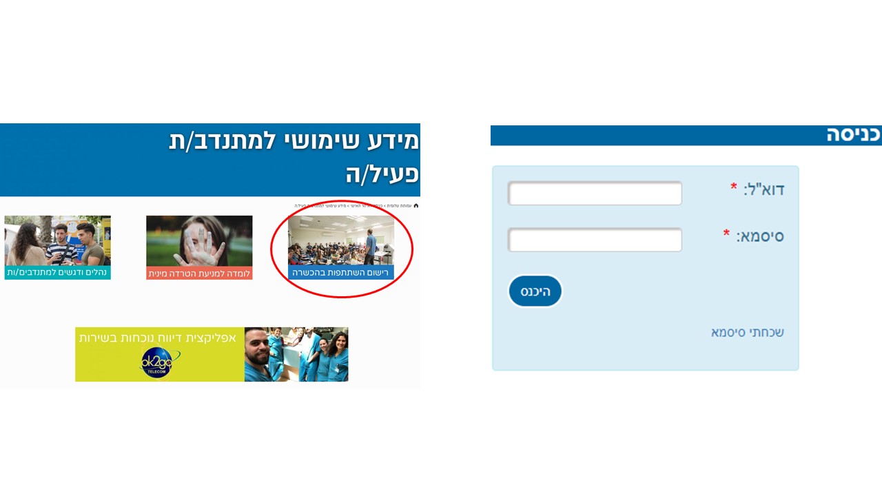 הרישום נעשה באתר : האיזור האישי (למעלה משמאל) –> שימושון –> השתתפות בהכשרות