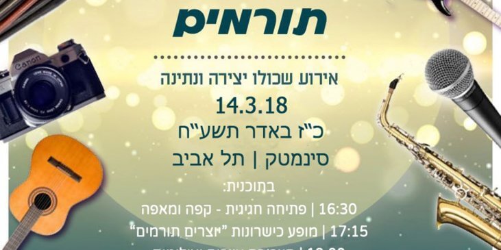 תשובה: אירוע יוצרים תורמים מתקיים פעם בשנה בשבוע המעשים הטובים ומאפשר למתנדבים לתרום מכישרונותיהם הרבים. האירוע משלב ציורים וצילומים בתערוכה שמוצגת כחודש במקום, וכן תחרות כישרונות צעירים בתחומי: שירה, ריקוד, סטנדאפ, הפקת סרטונים ועוד.