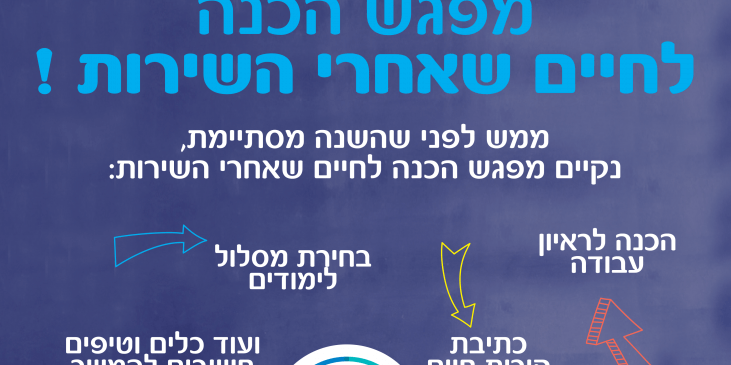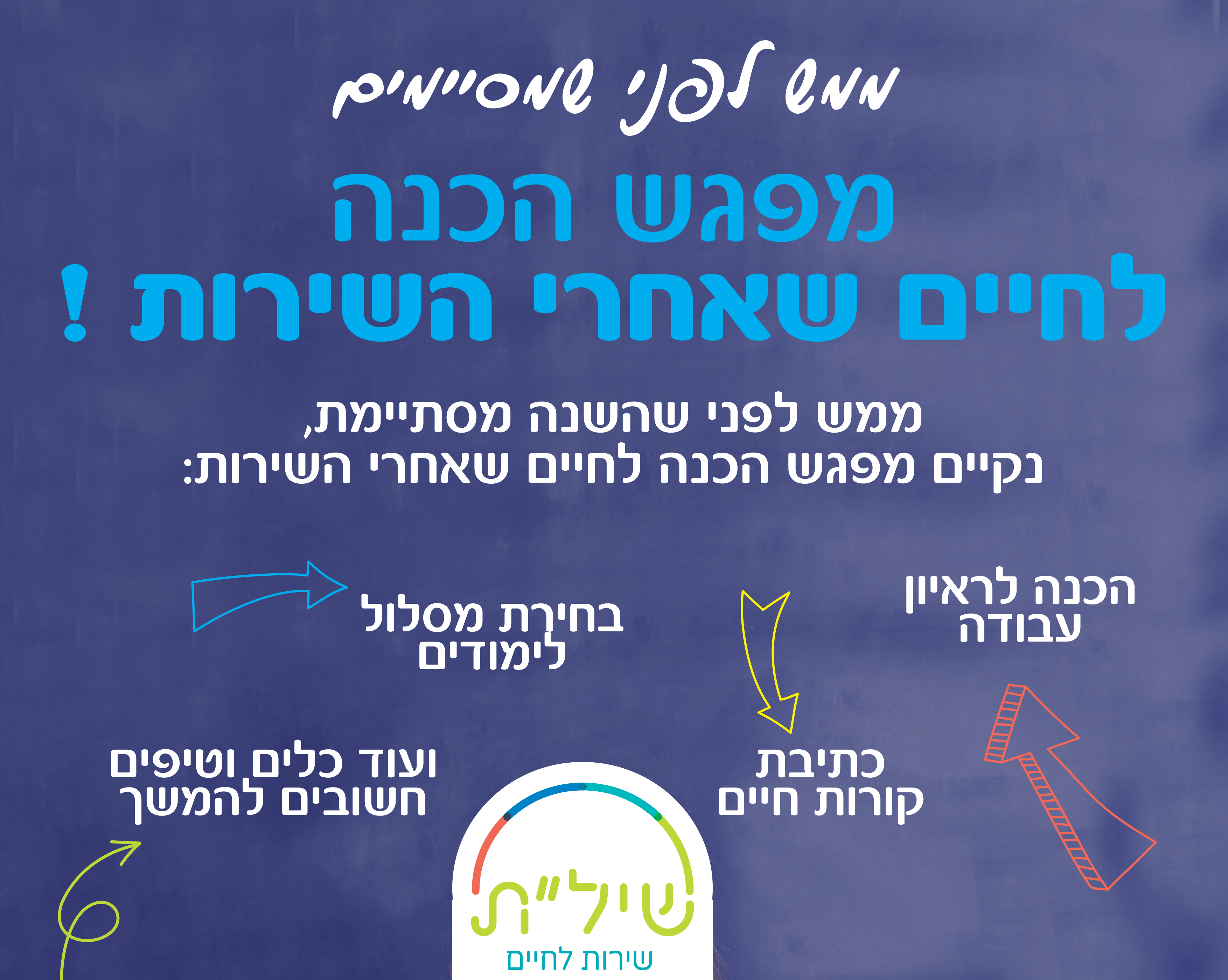 ממש לפני שהשנה מסתיימת, נקיים מפגש הכנה לחיים שאחרי השירות, הכנה לראיון עבודה, כתיבת קורות חיים, בחירת מסלול לימודים ועוד כלים וטיפים חשובים להמשך.