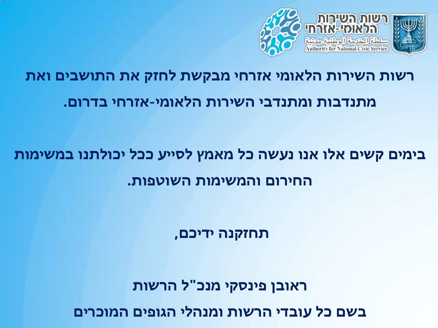 למתנדבים/ות תושבי הדרום ולאלה המשרתים בדרום, יש לקרוא את ההנחיות ולפעול בהתאם: