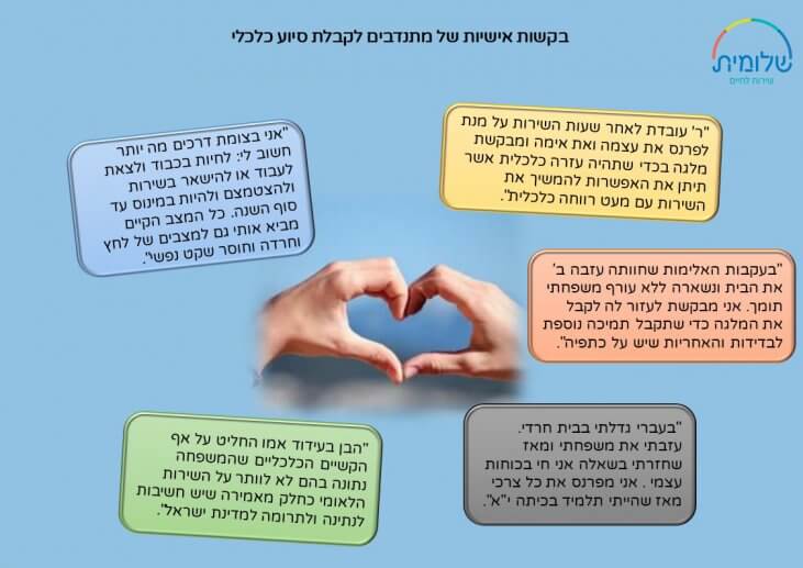 - שירות בעליה – תמיכה בעולות בודדות, שעלו לארץ ללא משפחתן והתנדבו לשירות לאומי