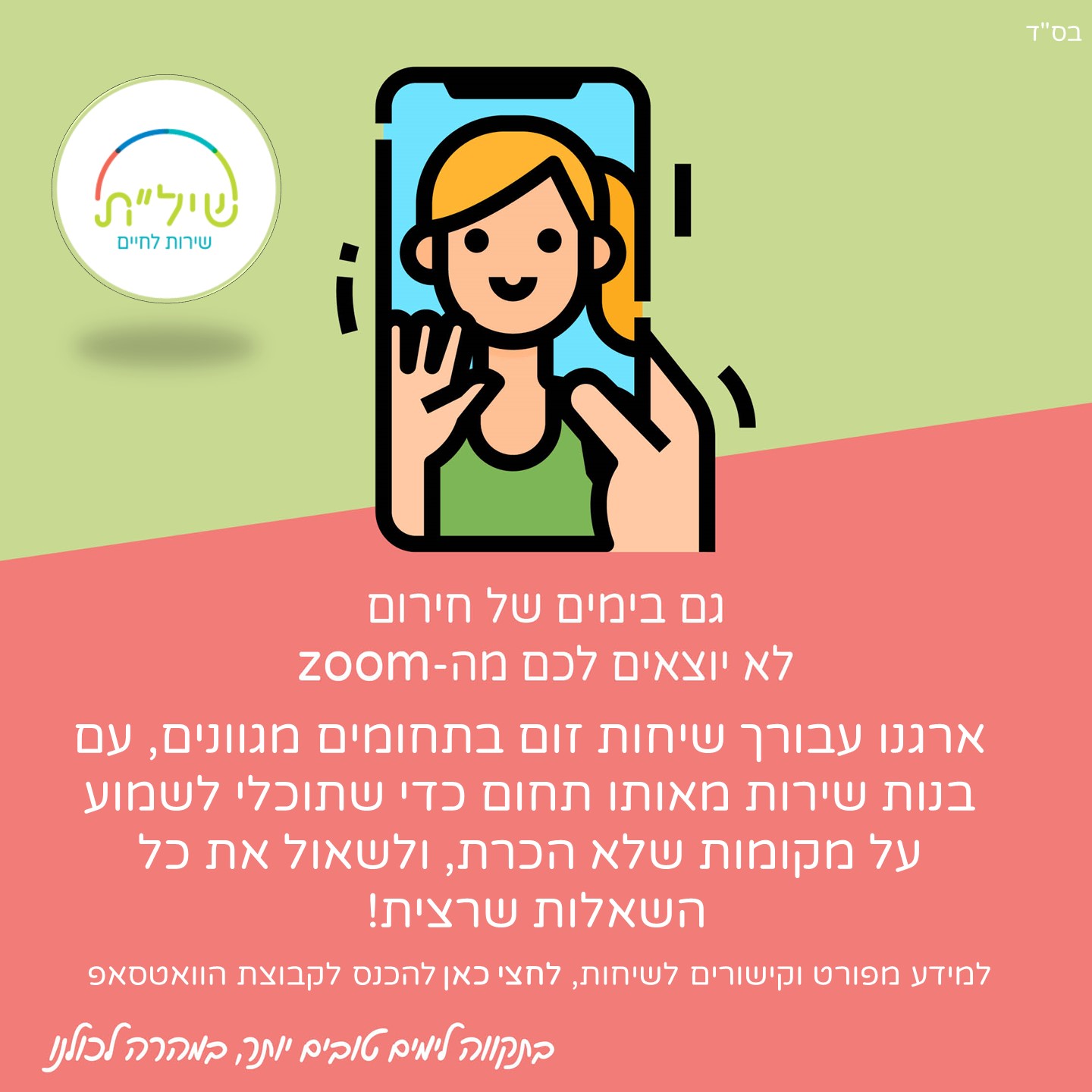 ארגנו עבורך שיחות זום בתחומים מגוונים, עם בנות שירות מאותו תחום כדי שתוכלי לשמוע על מקומות שלא הכרת, ולשאול את כל השאלות שרצית!