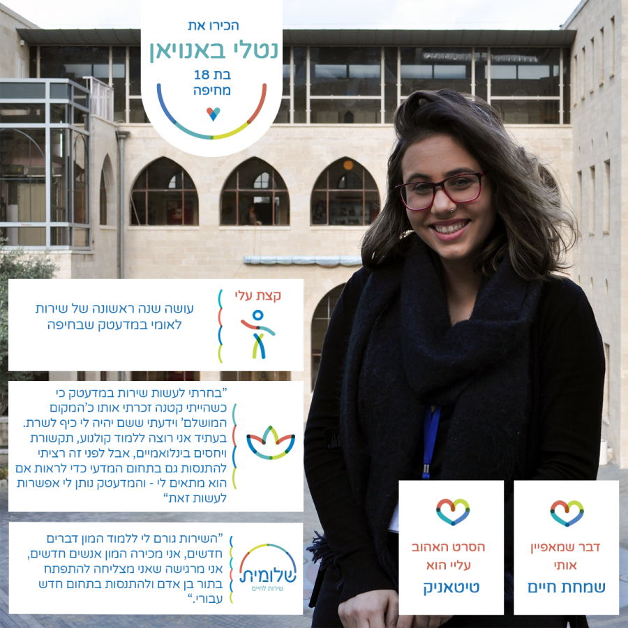 בעמותת שלומית מתנדבים אלפי צעירים וצעירות מכל רחבי הארץ, המגיעים ממגוון אוכלוסיות ומגזרים. בעמוד זה נכיר לכם את בני ובנות השירות המשרתים דרך העמותה.