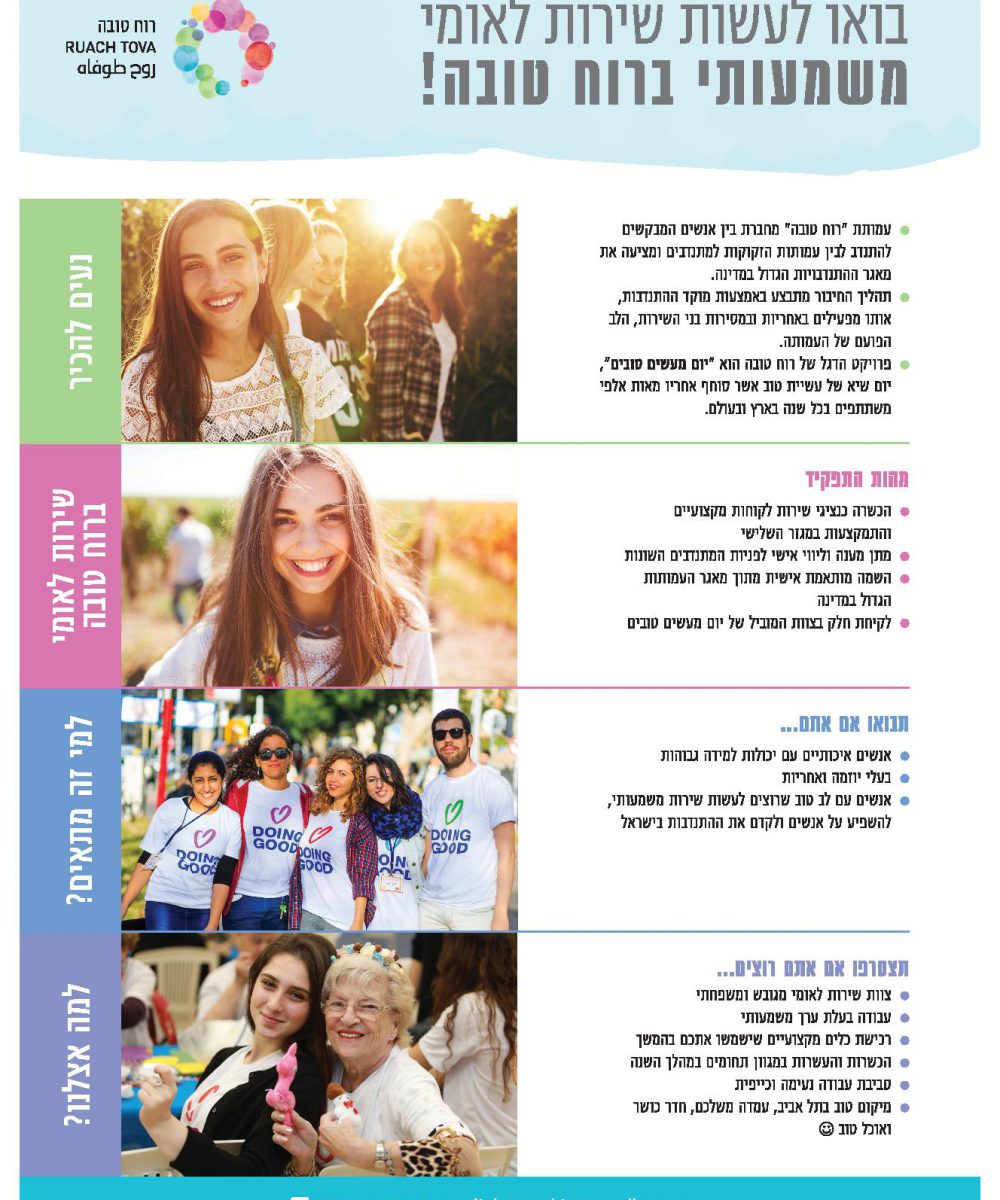 לצפיה בסרטון על השירות הלאומי בעמותת רוח טובה לחצו כאן