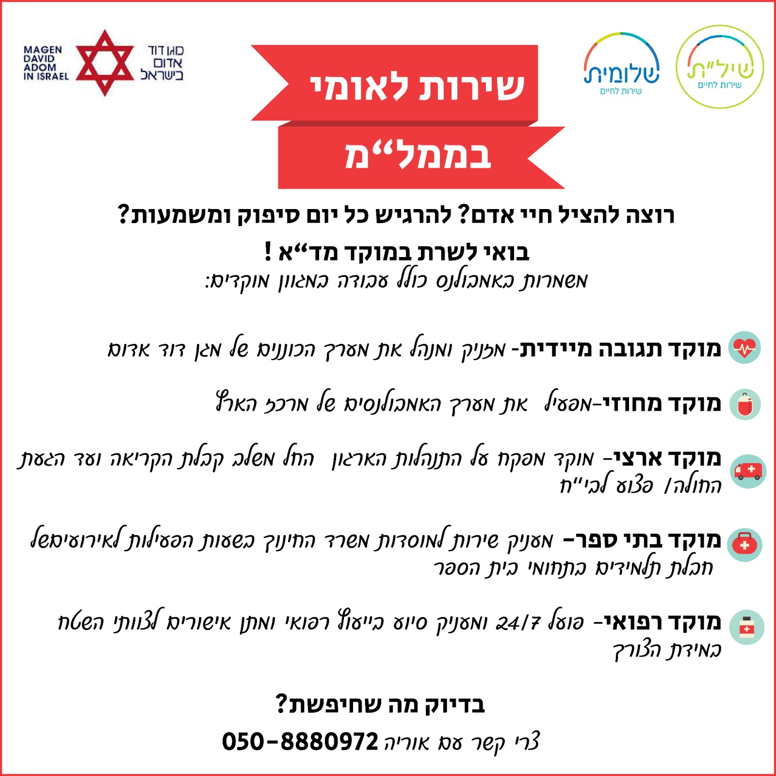 מגן דוד אדום מציע מגוון תפקידים: